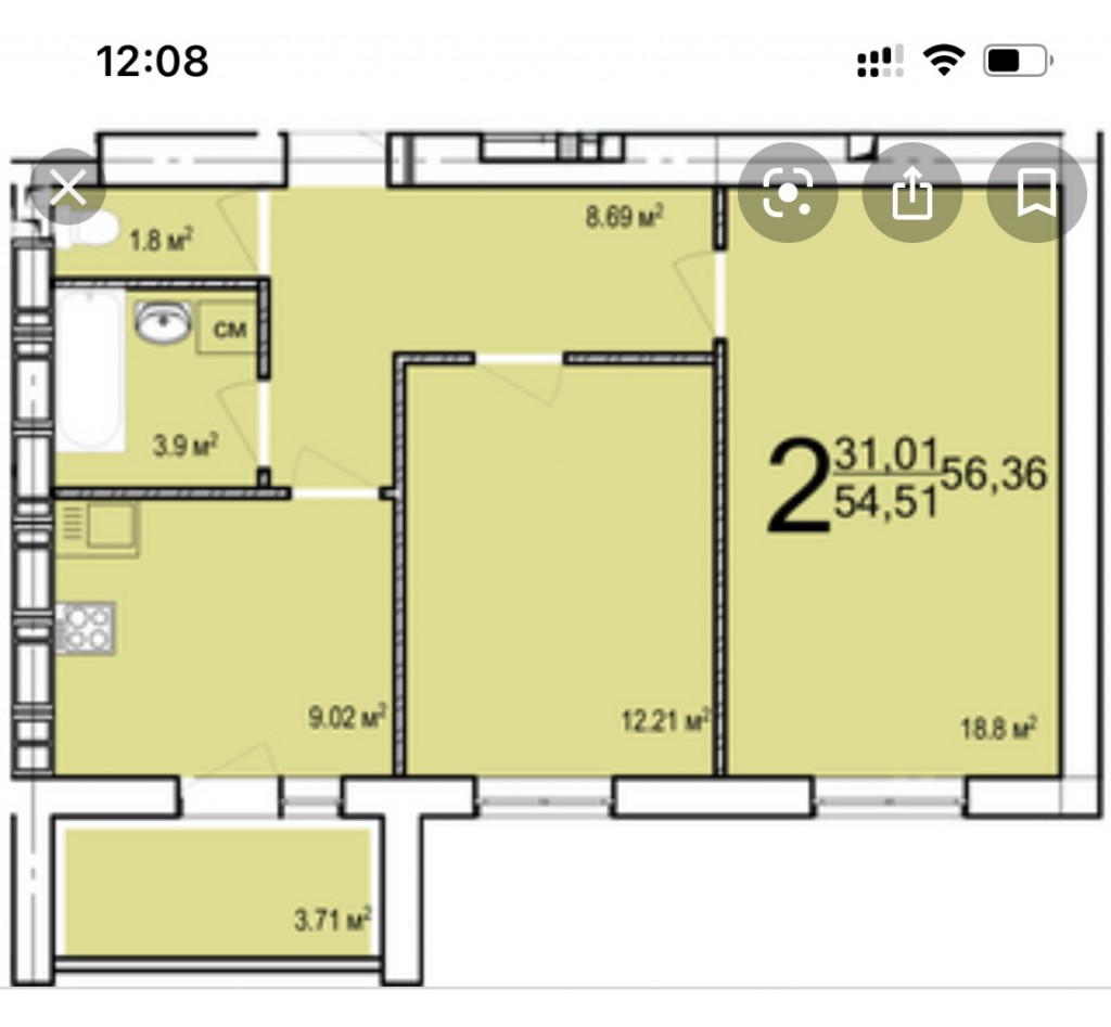 Загальна площа: 57 кв.м