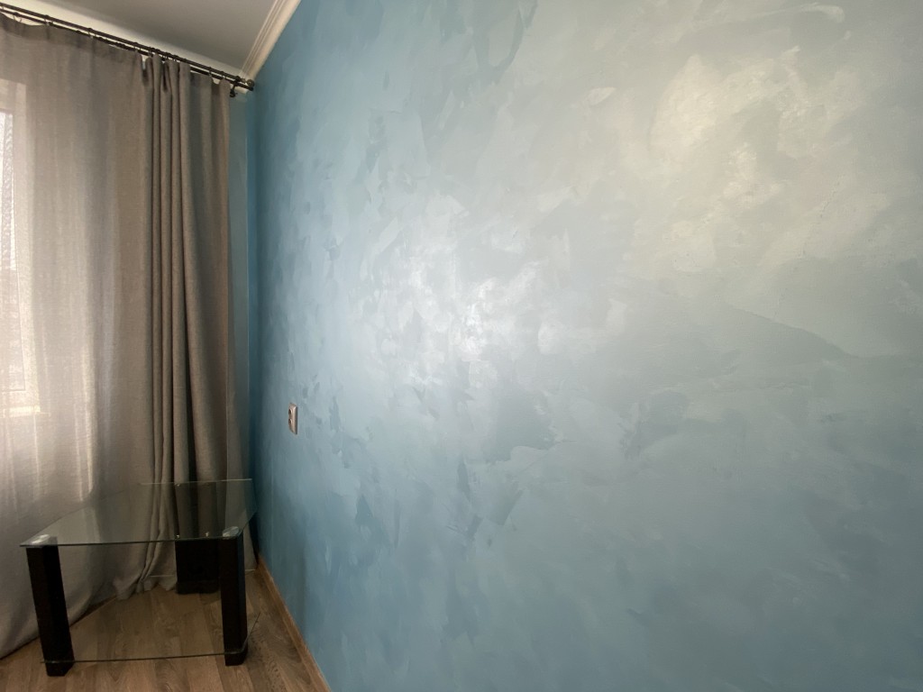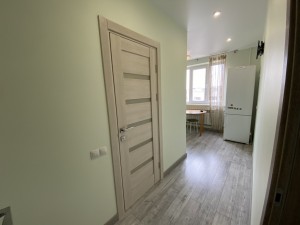 Стены - декоративная штукатурка и флизелиновые обои. Потолки натяжные. Пол ламинат и плитка. Бронированная дверь.