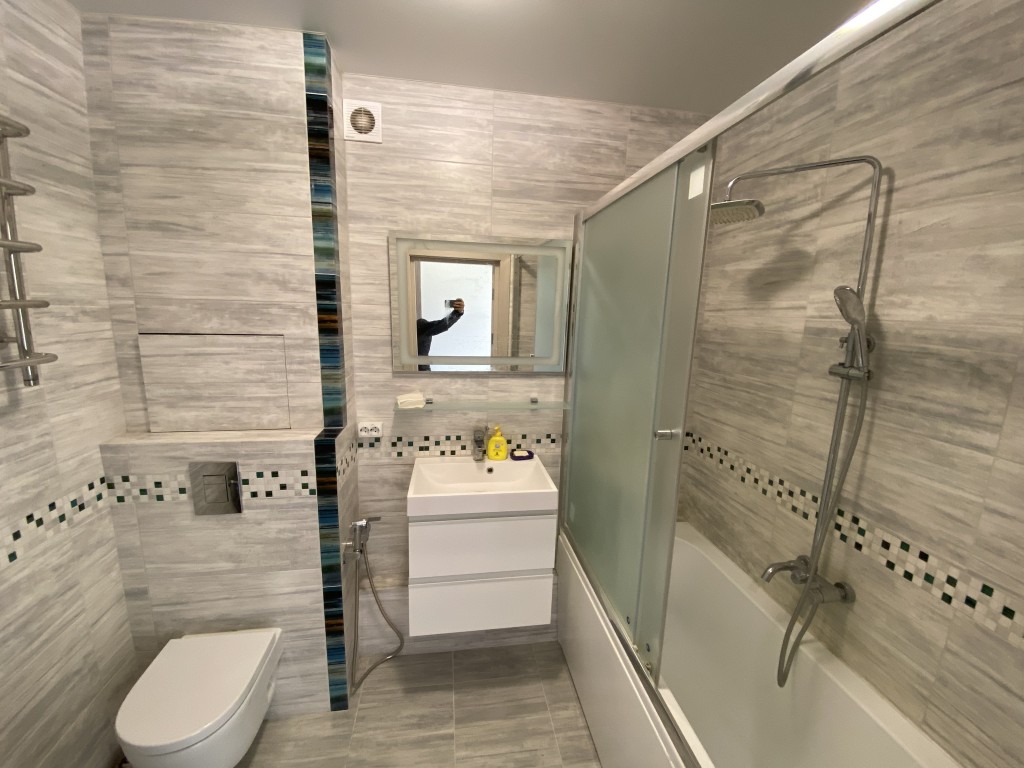 Формат квартиры: просторная кухня 9м с техникой и мебелью, современный просторный санузел с ванной, унитазом с инсталляцией и гигиеническим душем, бойлером и стиральной машиной, три изолированные комнаты, два застекленных балкона.