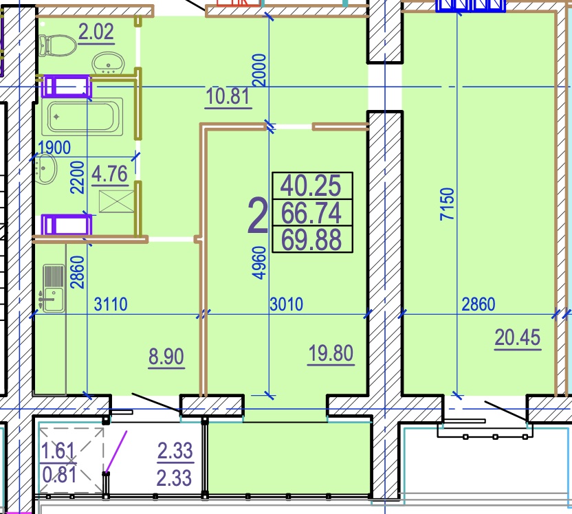 Загальна площа: 69.88 кв.м