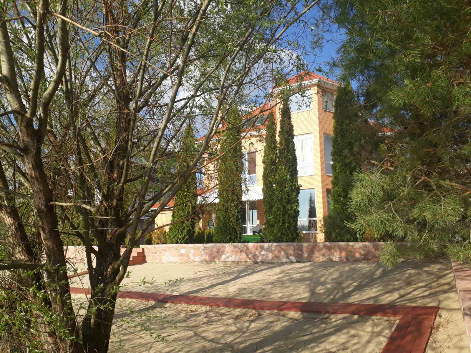 Будинок площею 380м 3-х поверховий, облицьований червоною цеглою, пальовий фундамент (пали 4,5м), готовність-100%, ремонт у стилі хай-тек, всі необхідні меблі та техніка.