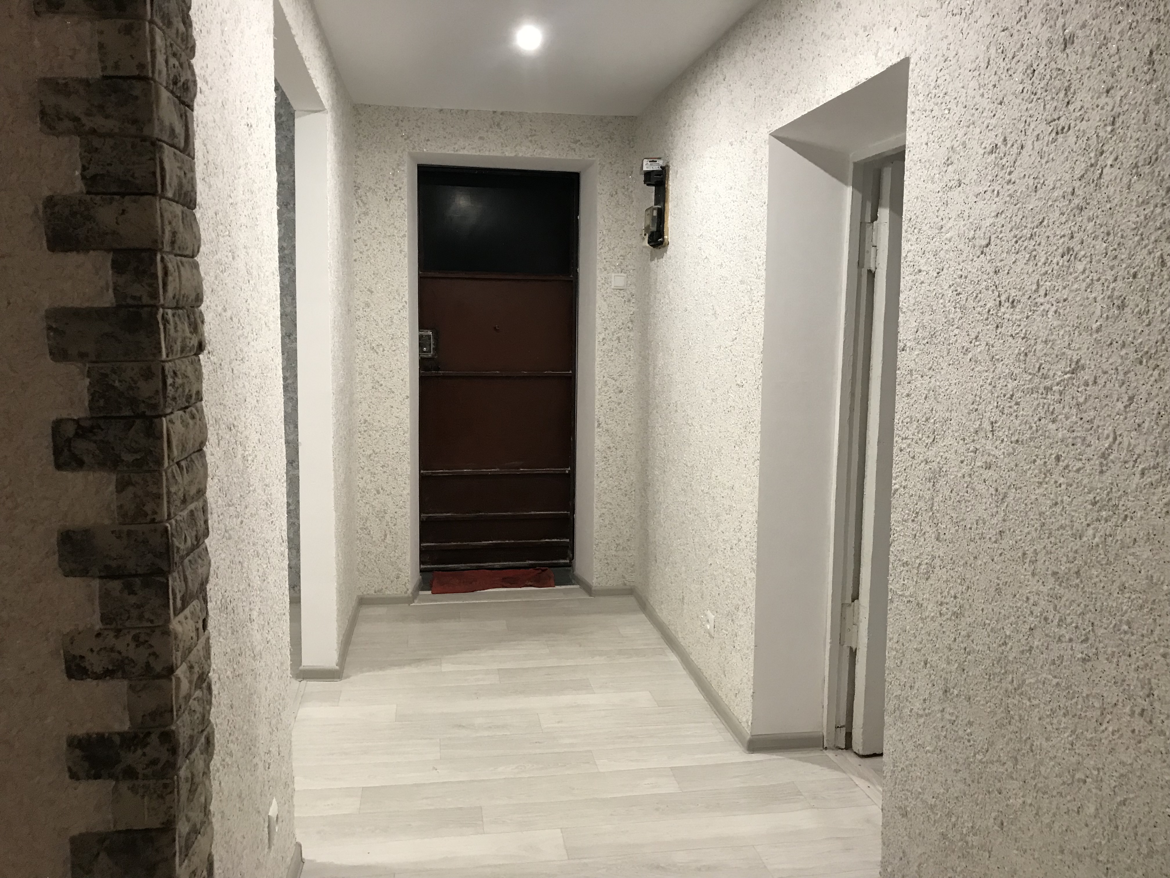 В квартире сделан качественный ремонт, поклеены жидкие и флизелиновые обои.