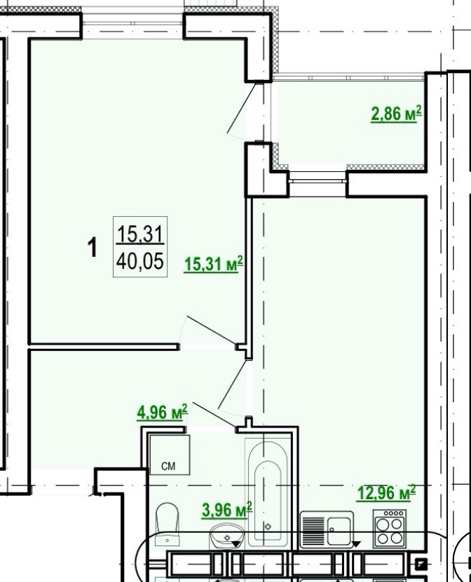 Загальна площа: 40 кв.м