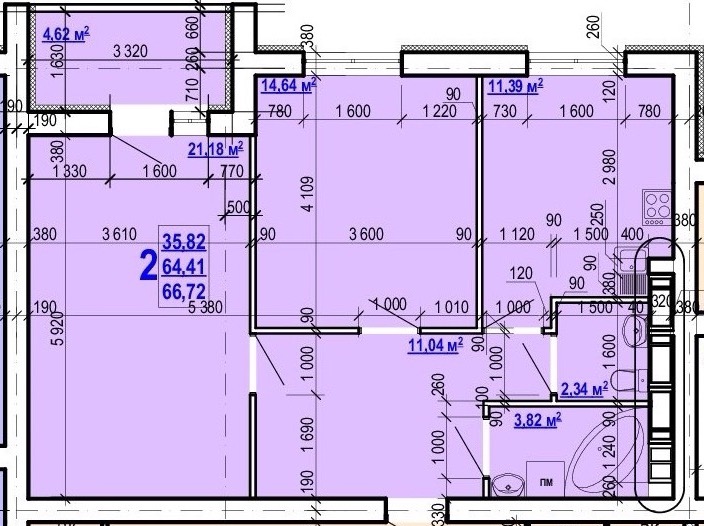 Загальна площа: 66.72 кв.м