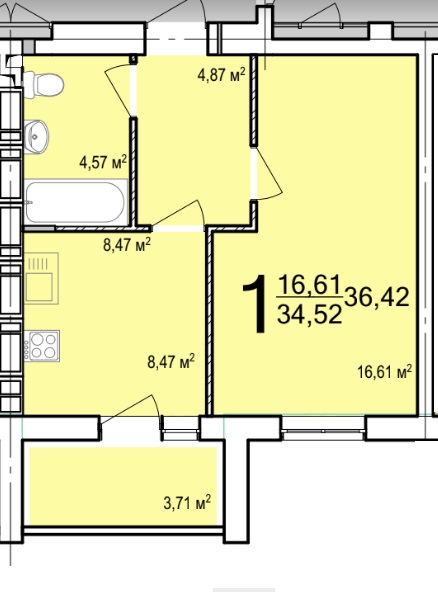 Загальна площа: 37 кв.м