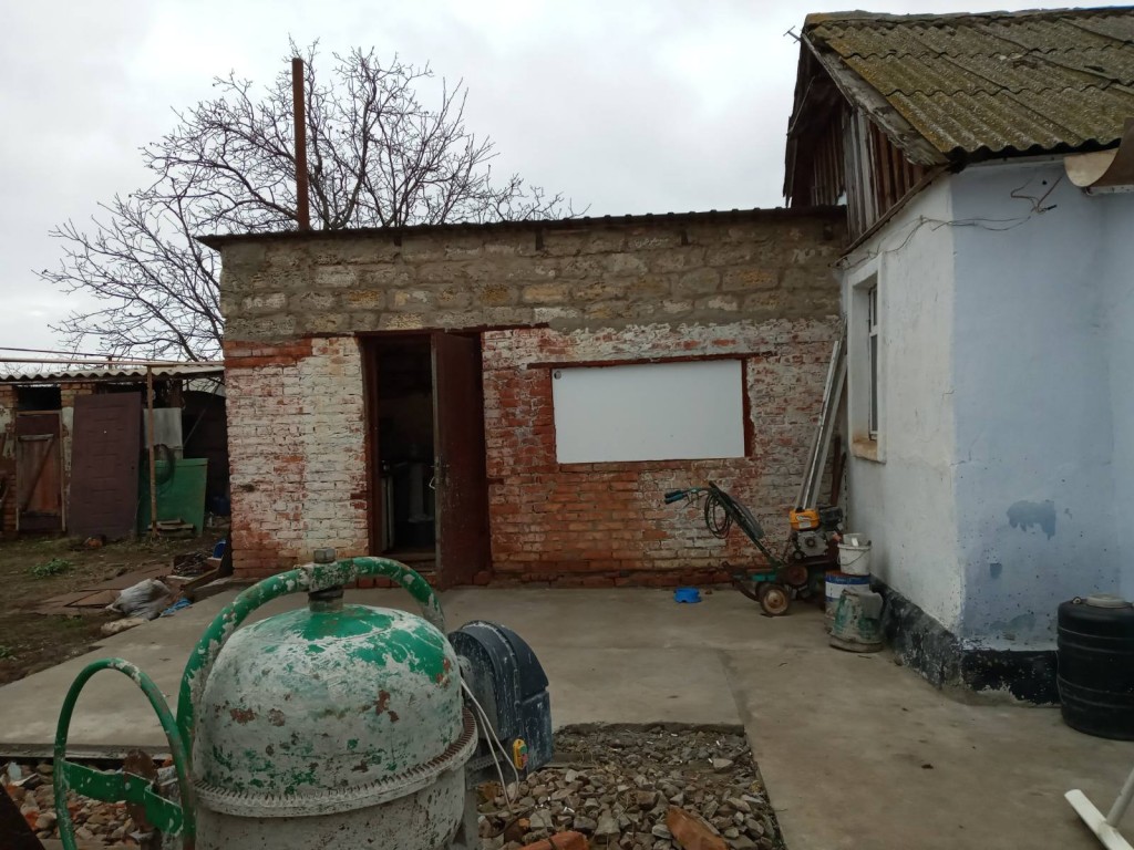 Рядом коробка новой постройки из газобетона, простенки.Есть крыша, металлопластиковые окна. Распланированы 4 раздельные комнаты 22, 18, 10, 10 м2. В новом доме есть кухня и санузел.