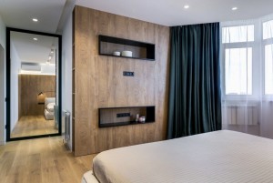 Выполнен современный авторский ремонт. Отделка из премиальных материалов (дерево, камень, медь), уникальные элементы декора выполнены по эскизам. Двойная звукоизоляция потолков и стен. Паркетная доска дуб: Woodheart Укомплектована необходимой мебелью и техникой: Кухня: Bosch, Whirlpool. Сплит система кондиционирования Daikin Мебель (диван, кровать) Interia Подогревы полов: с цифровыми регуляторами DEVI Сантехника: Willeroy&Bosch;, Kludi, Hansgroe.