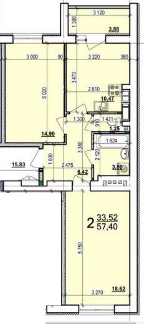 Загальна площа: 57 кв.м
