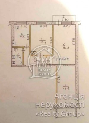 3 кімн., площа 56/36/6, поверх 2/9