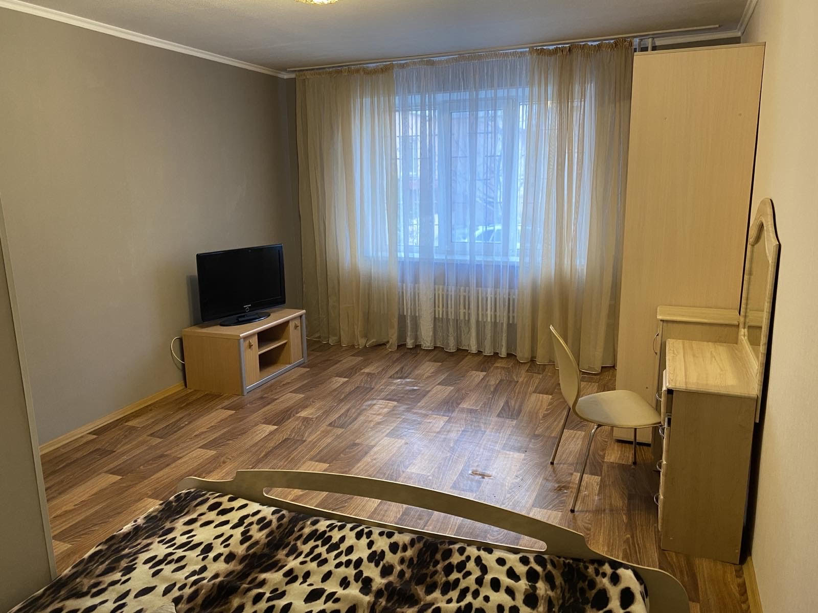Однокомнтная квартира площадью 40 кв.м находится в кирпичном доме на 1-м этаже( без балкона). В комнате 2-х спальная кровать. Вся техника мебель.