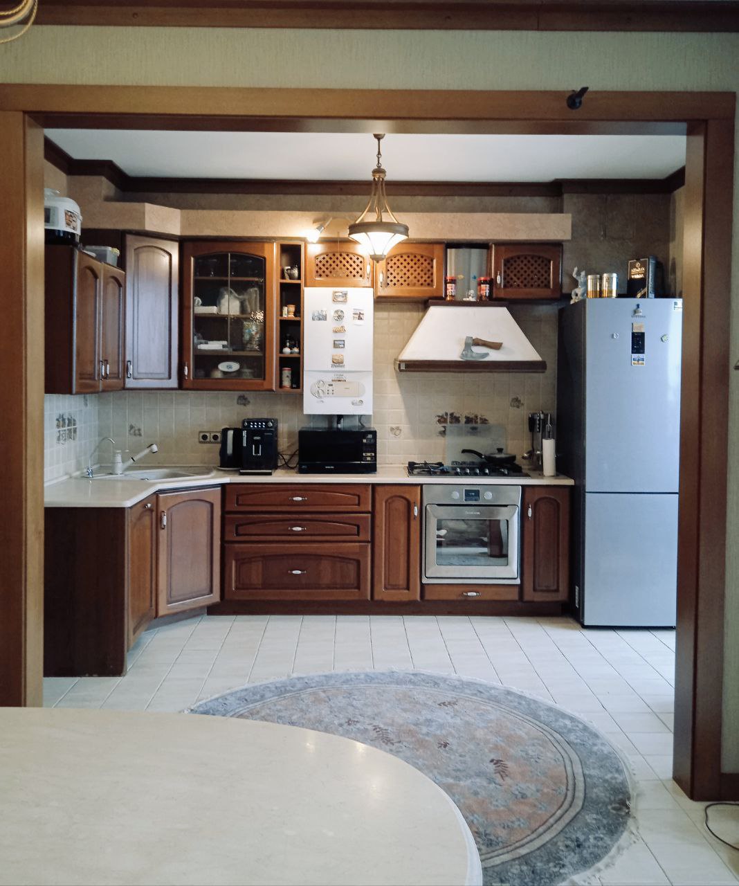 В квартирі 4 жилі кімнати, кухня-студія, комора, гардероб і роздільний санвузол. Все зроблено з якісних матеріалів – дерево і кераміка.