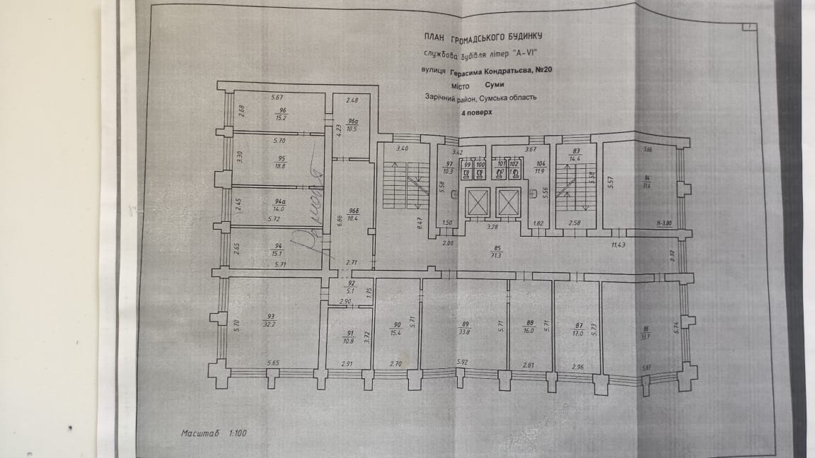 Здається офісне приміщення 100 м2 по вул.Г.Кондратьєва (Кірова) 20