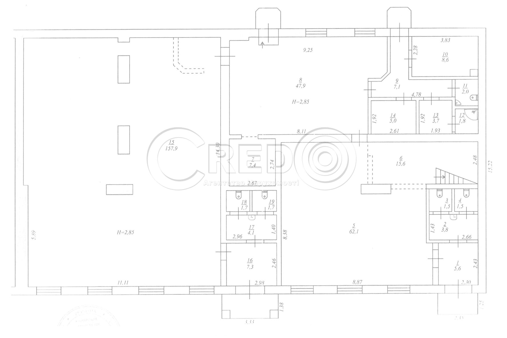 - розділено на два окремих приміщення, у кожного власні комунікації