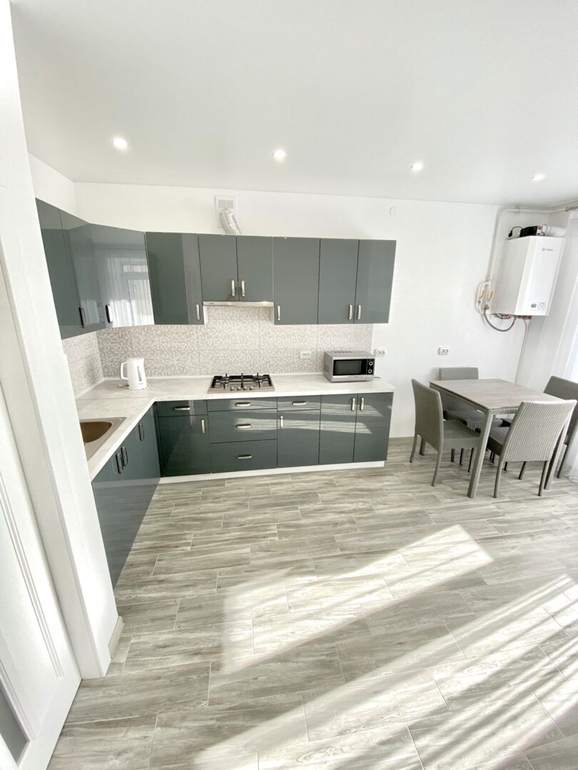 Площа 46/18/14 м2, поверх 3/9. Квартира із сучасним ремонтом, меблями. Забудовник КреаторБуд. Суміжний санвузол з душем, наявний балкон. Територія повністю огороджена, по периметру є камери відеонагляду. Є приміщення для дитячих візочків. Великий дитячий майданчик і футбольне поле у внутрішньому дворику. Безкоштовний гостьовий паркінг на території житлового комплексу. Всі меблі та техніка залишаються. Є відеоогляд.