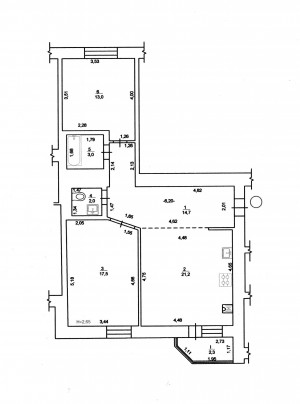 3 кімн., площа 70/42/11, поверх 2/7