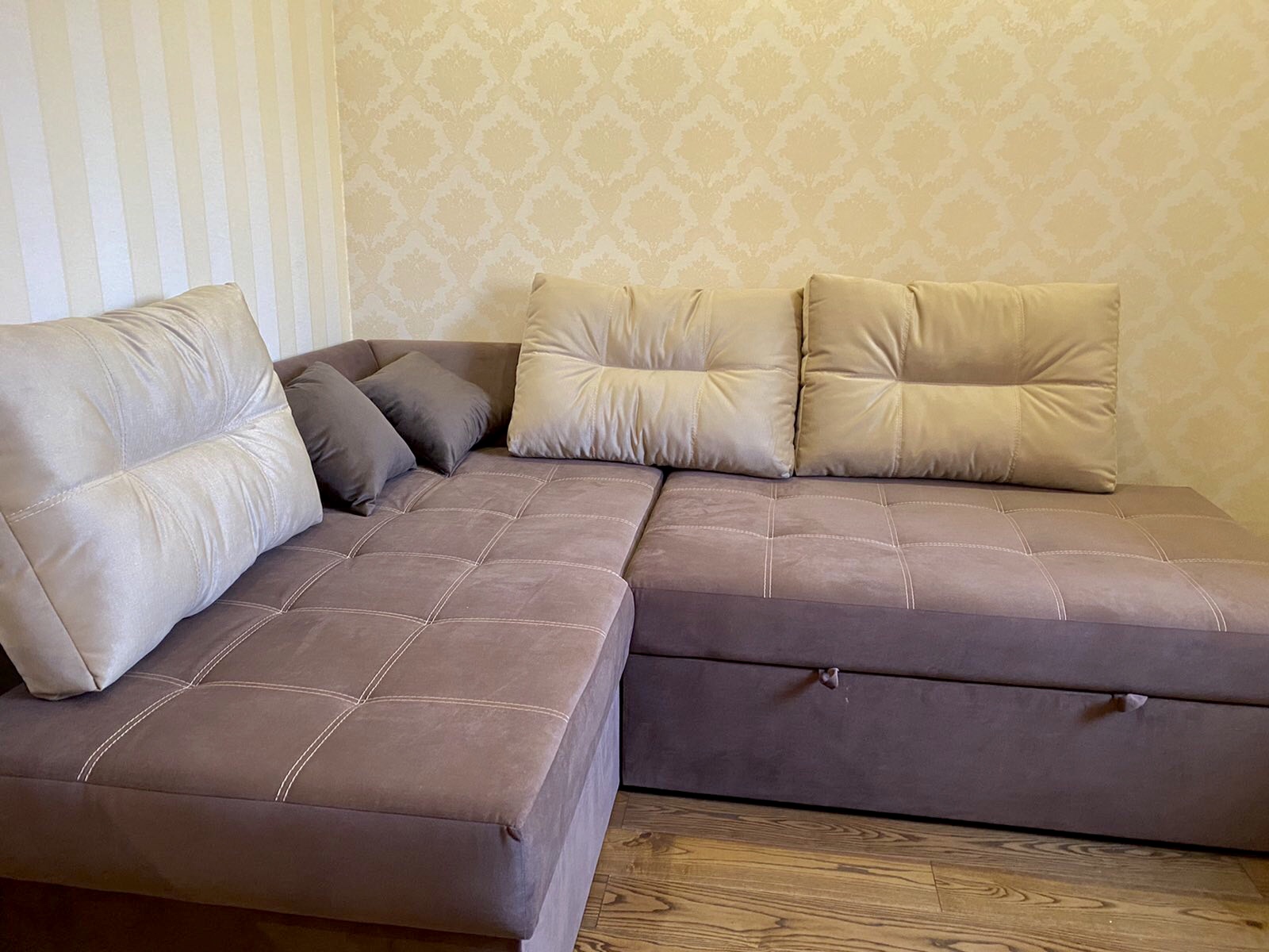 Мебель: в зале итальянский диван, а также раскладное Релакс-кресло телячьей кожи,
