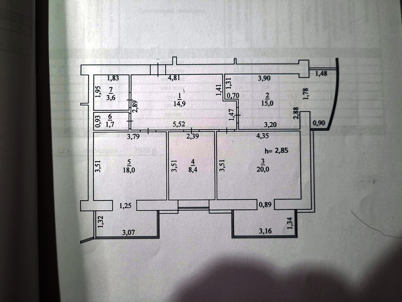 Висота стелі: 2.85м