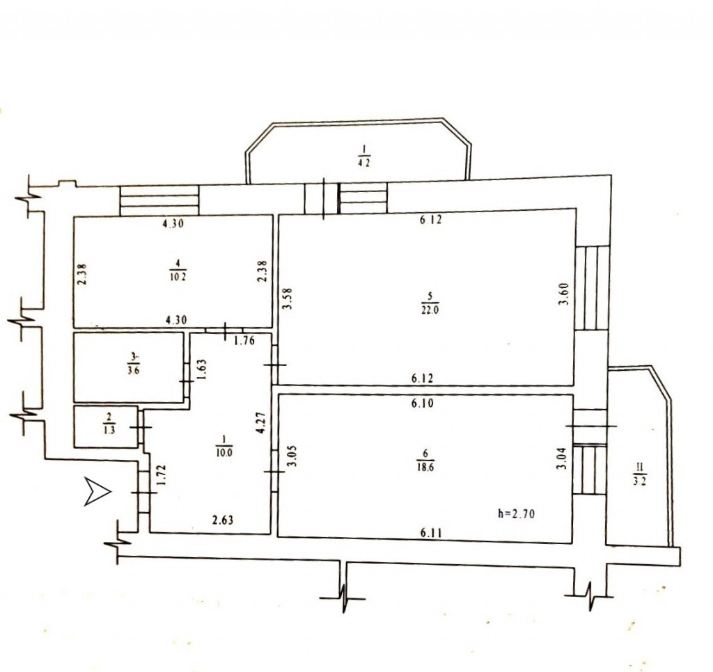 - висота стель Н= 2,7 м;