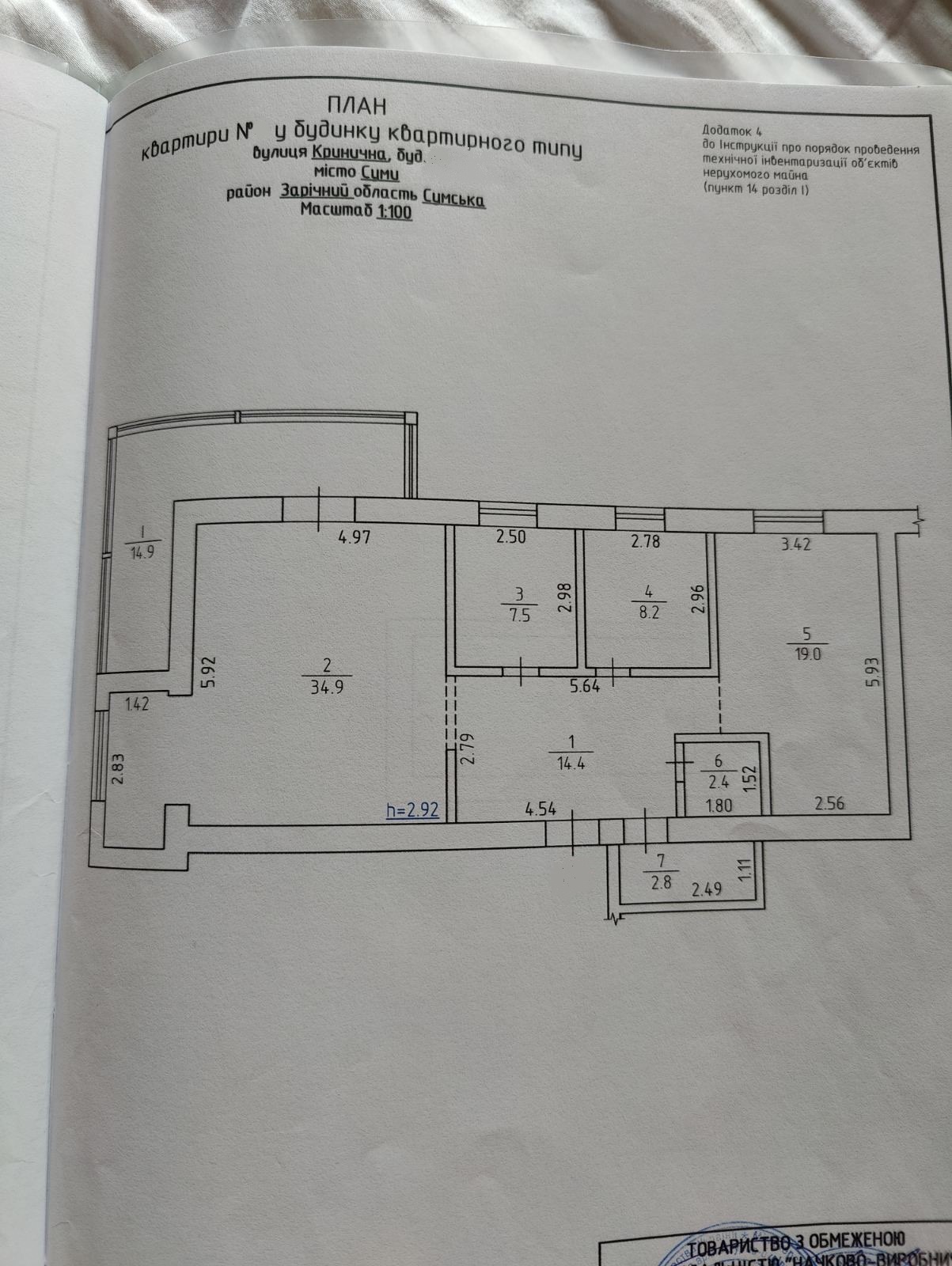 Загальна площа 104 кв.м, житлова - 27 кв.м, кухня - 34 кв.м.