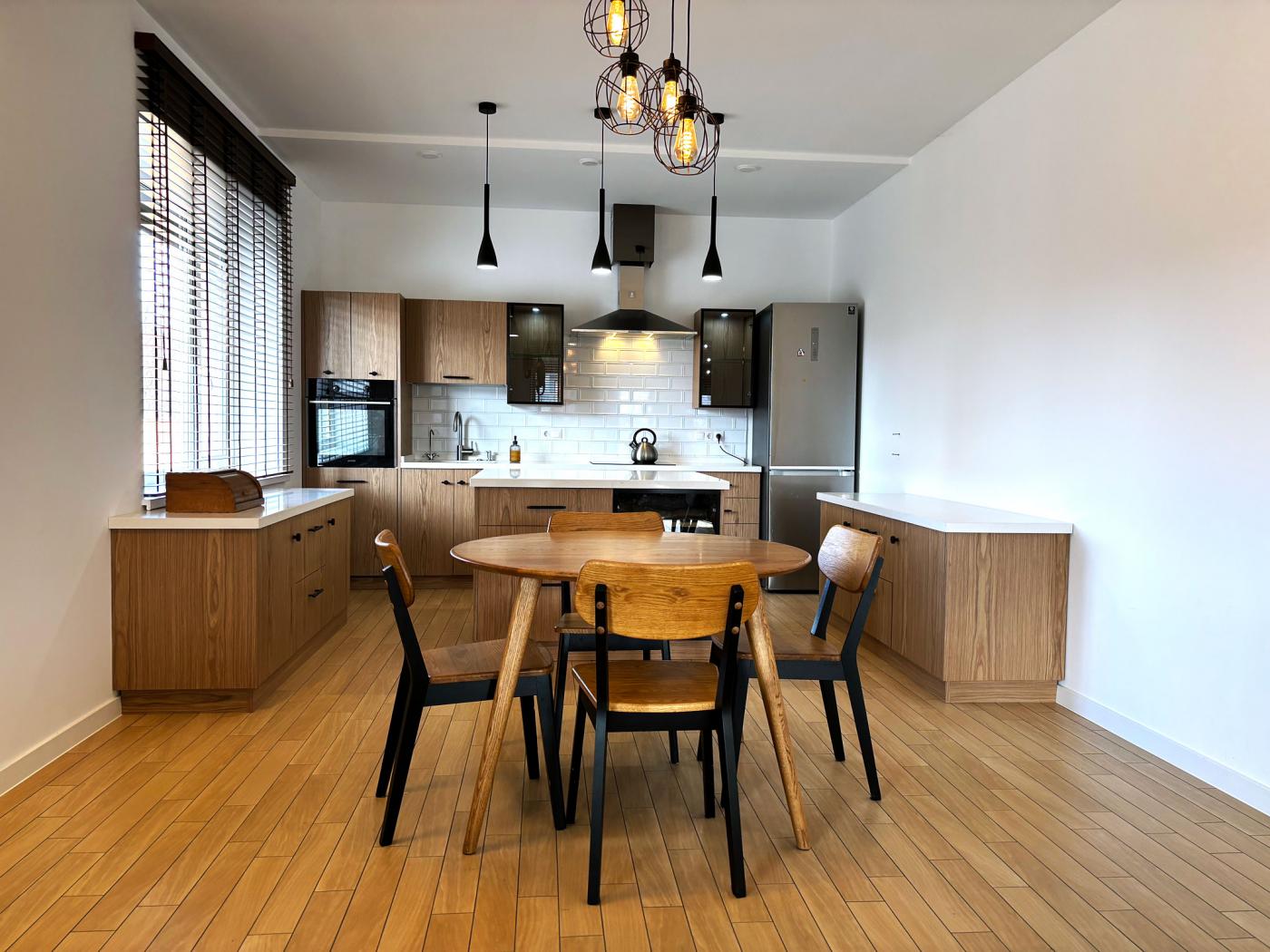 Будинок побудований з використанням якісних матеріалів, а меблі з масиву дерева були створені на замовлення.