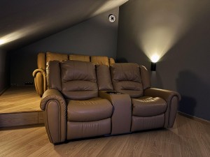 Третій поверх: два окремі кабінети, просторий зал, ванна кімната з душовою кабіною та кінотеатр з двома рядами індивідуальних сидінь та 85-дюймовим телевізором.