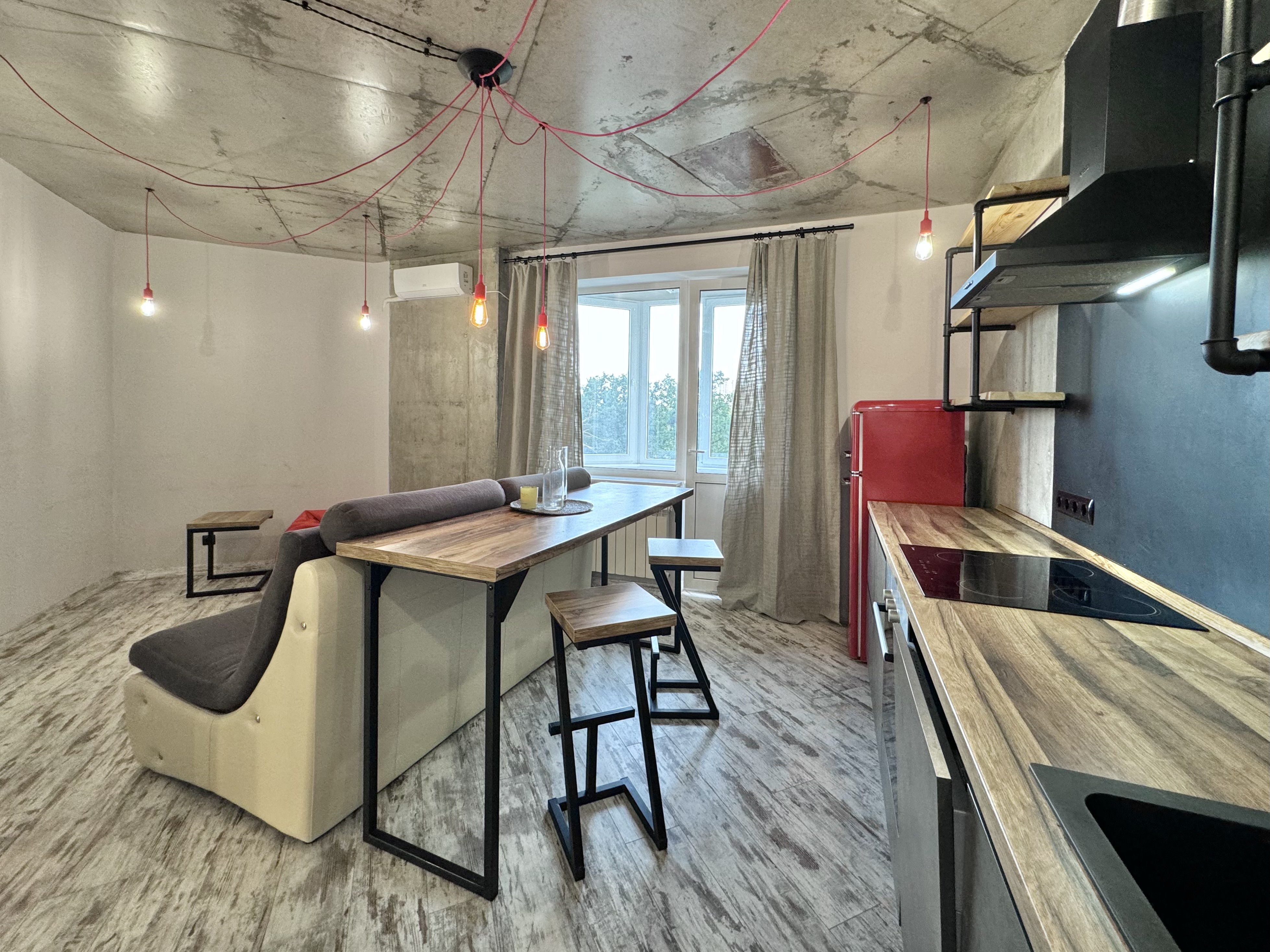 Сучасна квартира з дизайнерським ремонтом у стилі лофт.